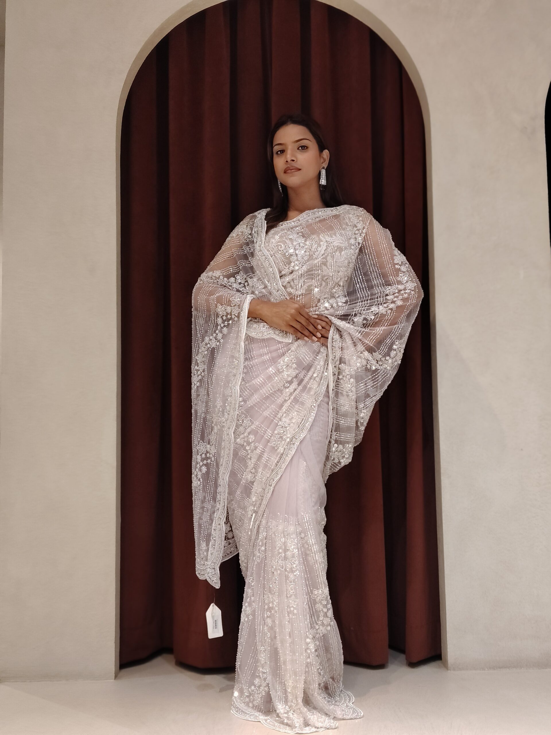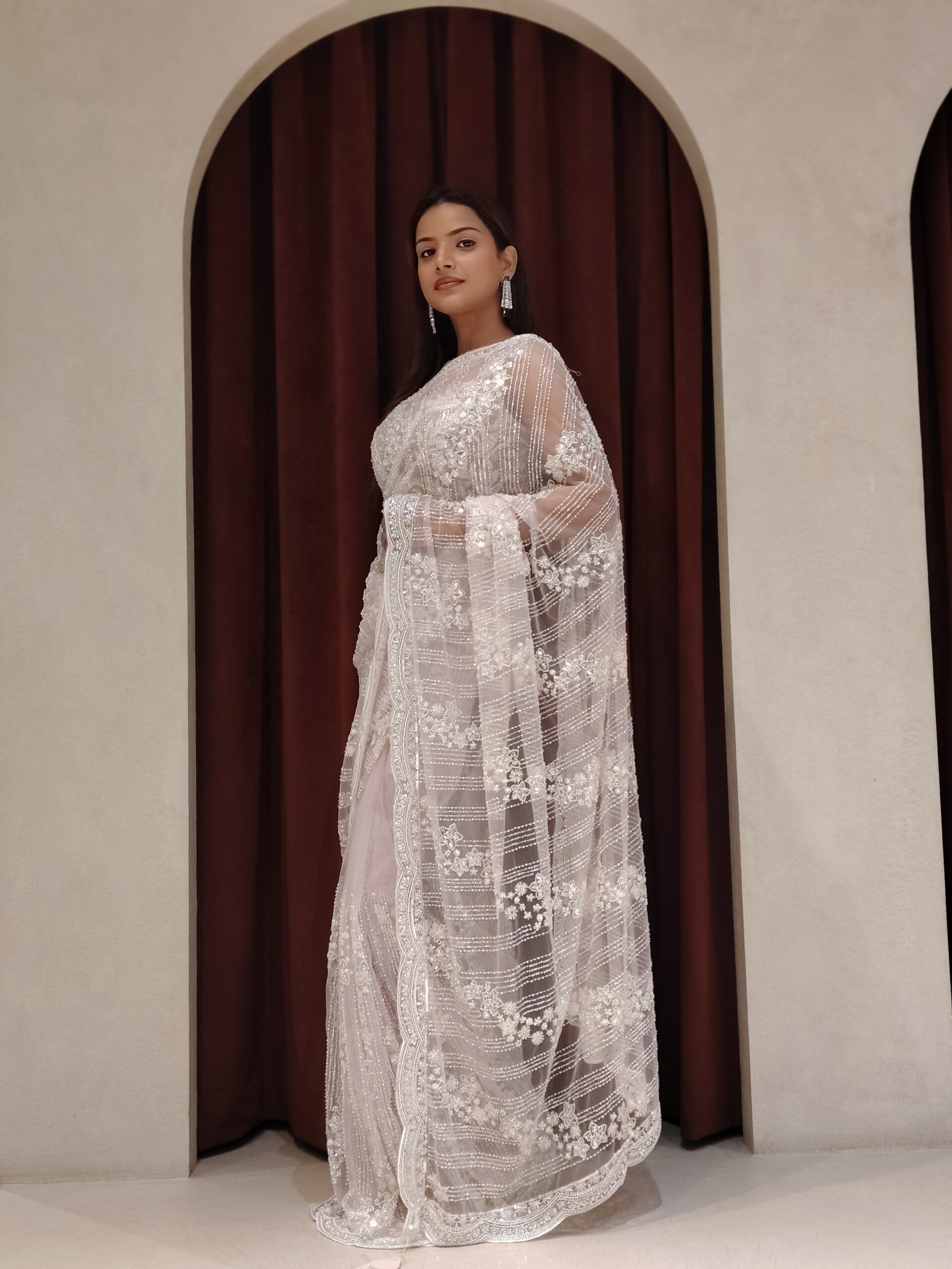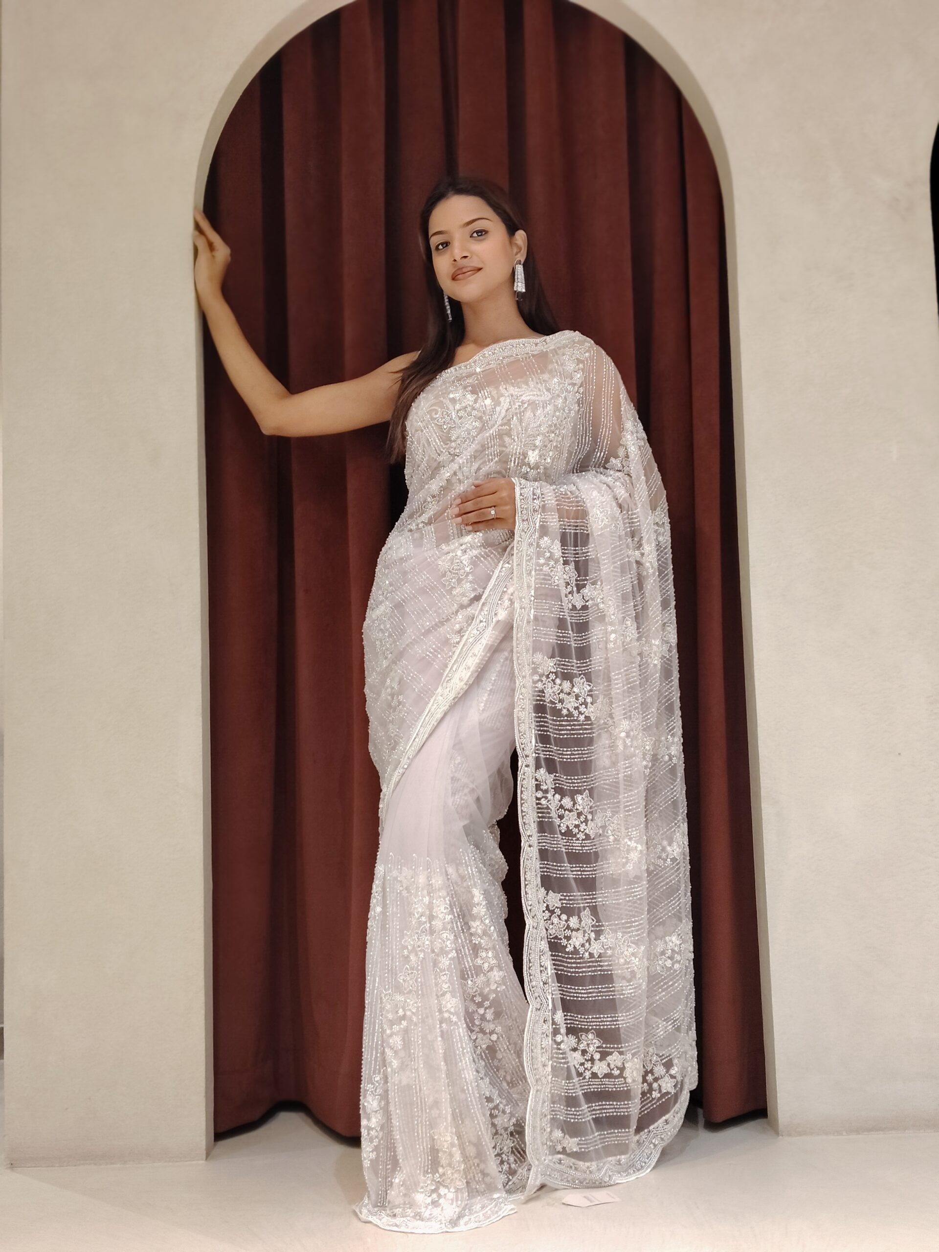 Perfect for weddings and festive celebrations, this saree is a celebration of femininity, elegance, and grandeur — a statement of refined taste and exquisite style.